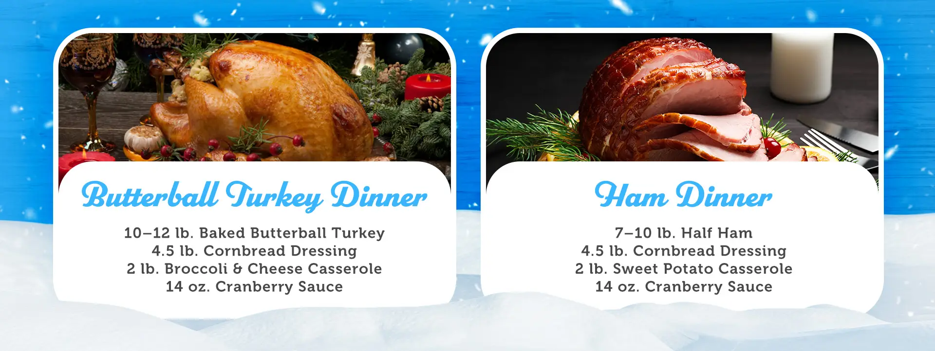 Discover the Difference—Celebrate the season without the stress! Enjoy a freshly prepared Butterball Turkey or Ham Dinner, complete with homestyle sides and cranberry sauce.